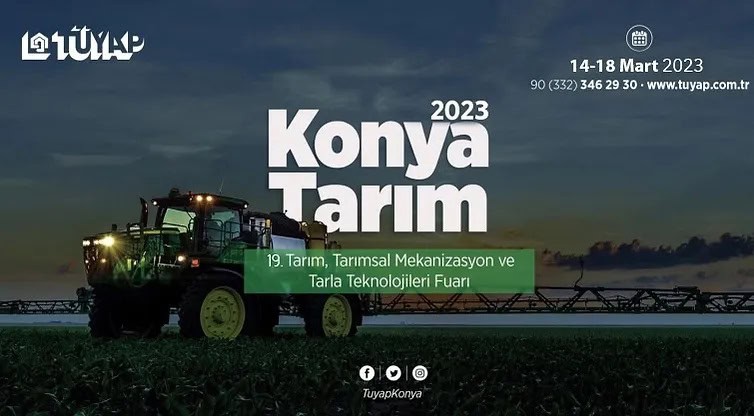 KONYA TARIM 2023 Konya 19. Tarım, Tarımsal Mekanizasyon ve Tarla Teknolojileri Fuarı kuruluşumuz TÜYAP Konya Fuarcılık A.Ş tarafından 14-18 Mart 2023 tarihleri arasında Konya Ticaret Odası – TÜYAP Konya Uluslararası Fuar Merkezi’nde gerçekleştirilecektir.